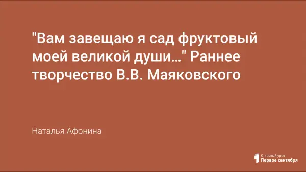 Урок, посвященный творчеству В.В. Маяковского, знакомит с ранними произведениями поэта, с его новаторскими приемами в форме, содержании и лексике поэтического произведения; формирует умение анализировать лирическое произведение с точки зрения содержания и формы; помогает продолжить развитие связной речи учащихся.