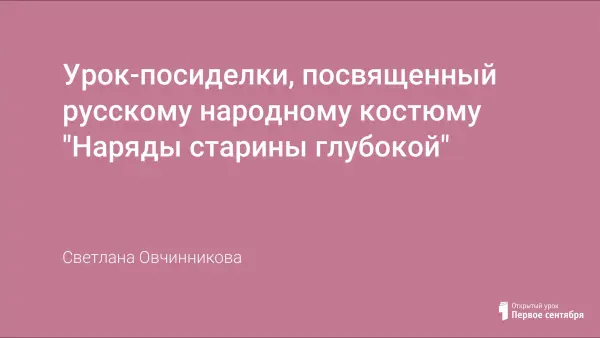 Урок расширяет и углубляет знания по народному костюму. Развивает у школьников интерес и любовь к народному творчеству. Воспитывает чувство патриотизма.