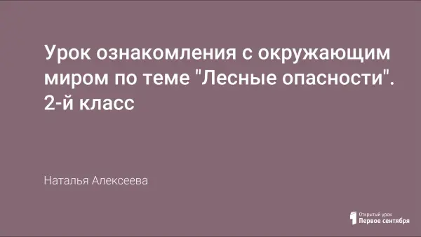 Урок ознакомления с окружающим миром ставит своей целью научить детей безопасному поведению в лесу и возле водоемов; выяснить, какие грибы съедобные, а какие несъедобные; как правильно вести себя, если рядом летают жалящие насекомые; составить памятку «Как нужно купаться?»