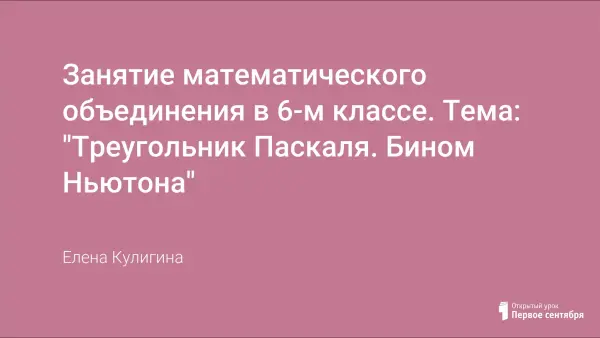 Занятие способствует развитию у обучающихся любознательности. На нем школьники должны изучить бином Ньютона.