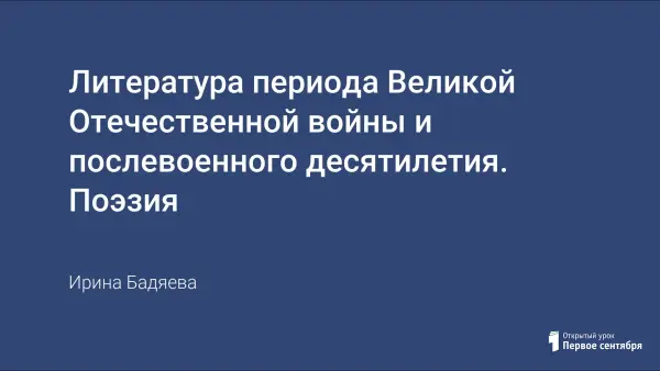 Программа по литературе отводит минимальное количество часов на изучение темы "Литература периода Великой Отечественной войны и послевоенного десятилетия". Необходимо в сжатой форме рассказать о поэзии данного времени, пробудить интерес к чтению стихотворений, желание далее уже самостоятельно изучать данный материал.