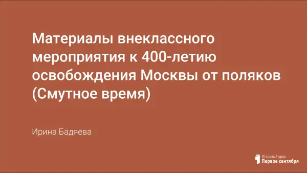 Представлены исторические материалы для проведения внеклассного мероприятия к 400-летию освобождения Москвы от поляков (Смутное время).