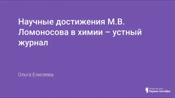Внеклассное мероприятие проводилось в рамках недели, посвященной роли М.В. Ломоносова в российской науке и образовании, и явилось одной из страничек устного журнала "Научные достижения М.В. Ломоносова в области химии". Материал будет интересен учащимся 8–11-х классов.