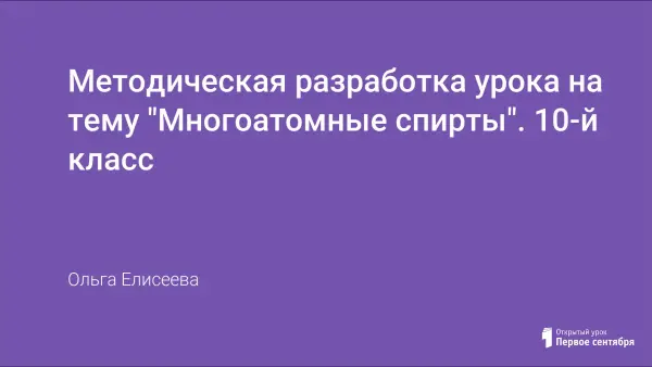 Цель урока: изучение свойств многоатомных спиртов на примере глицерина и этиленгликоля, используя знания об одноатомных спиртах.