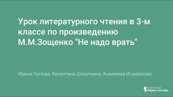 Урок литературного чтения в 3-м классе по произведению М.М.Зощенко "Не надо врать"