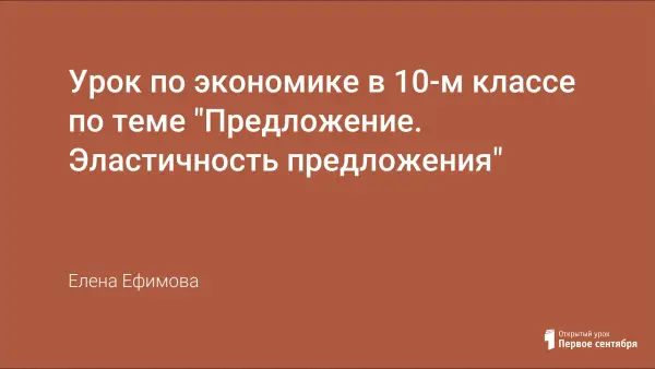 Урок проводится в классах как базового, так и профильного уровня. В ходе урока учащиеся должны усвоить понятия: «предложение», «величина предложения», «закон предложения», шкала предложения, кривая предложения, неценовые факторы предложения, эластичность предложения, коэффициент эластичности предложения по цене.