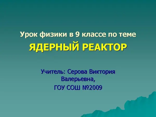 Урок объяснения нового материала основывается на ранее полученных знаниях. В ходе урока ученики закрепляют понятие "цепная ядерная реакция" и применяют свои знания при изучении ядерного реактора.