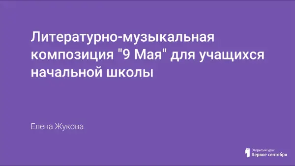Предлагаю сценарий литературно-музыкальной композиции «9 Мая» для учащихся начальной школы. Проводя уроки, праздники, классные часы, посвященные этой дате, мы воспитываем в подрастающем поколении любовь к Родине, чувство патриотизма, гордость за свою страну.