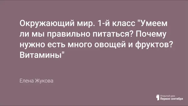 Воспитание у младших школьников стремления к здоровому образу жизни одна из важнейших задач для педагога. Поэтому в 2010 году был разработан урок о правильном питании.