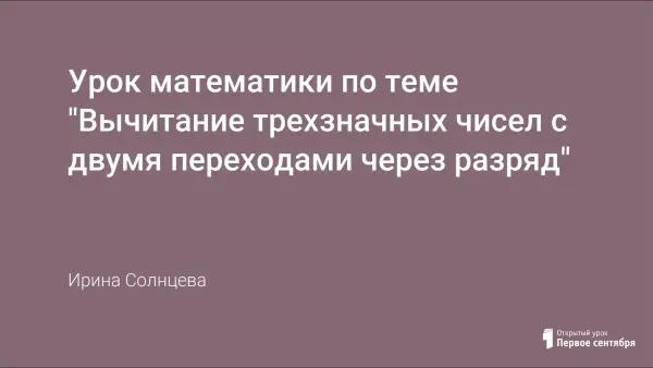Изучение математики в начальных классах является базовым для дальнейшего изучения математики, поэтому важно научить детей выполнять вычитание и сложение трёхзначных чисел, в том числе и вычитание трёхзначных чисел с двумя переходами через разряд. Применение нестандартных методов обучения, применение ИКТ позволяет заинтересовать детей, повысить эффективность урока. Как следствие - повышается интерес детей к математике.