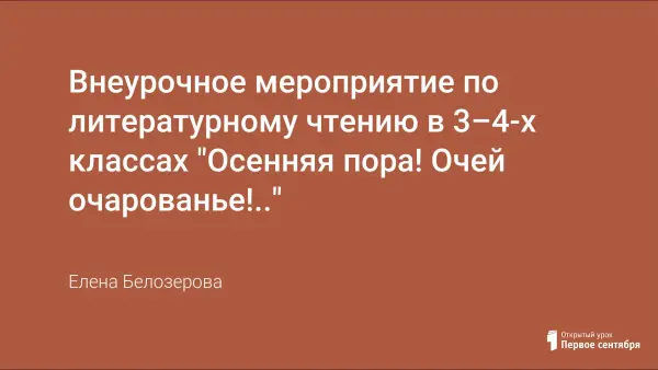 Данное мероприятие может быть проведено и как урок внеклассного чтения в 3–4-х классах после изучения темы «Поэтическая тетрадь», и как внеурочное мероприятие среди параллелей 3-х или 4-х классов по теме «Осенняя пора». Урок является стартовым при проведении последующих мероприятий, объединенных в общий цикл «Литературно-поэтическая тетрадь».