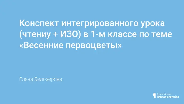 Интегрированный урок в 1-м классе по ИЗО и художественному труду, дающий учащимся представление о характерных признаках весны в неживой природе. Тема урока перекликалась с темой по основному курсу литературного чтения УМК «Щкола России» Л.Ф. Климановой. На уроке использовался кейс-метод, который активно внедряется в нашей школе. На уроке была использована презентация, а также смайлики как средство оценивания качества выполнения работ.