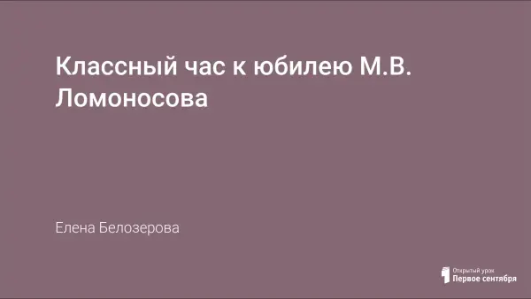 Данный классный во 2-м классе, посвященный юбилею М.В. Ломоносова как основоположника мозаичного искуства в России. Классный час способствовал формированию представления об истории развития мозаики, пробуждая у детей чувство гордости, восхищения, уважения к великому ученому М.В. Ломоносову. На классном часе использовался кейс-метод, который активно внедряется в нашей школе, а также современные информационно-коммуникативные технологии в свете требований ФГОС.