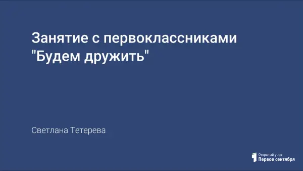 Урок проводится в первую неделю сентября. Цель занятия: помочь детям войти в контакт друг с другом и со взрослыми, осознать себя как личность.