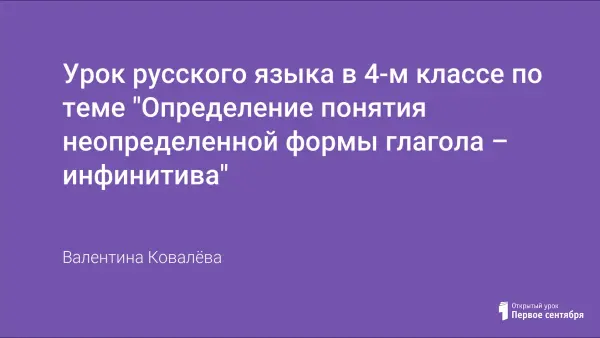 Урок постановки учебной задачи, анализа и выполнения практических действий. Цель урока: создание учебных условий для введения понятия неопределенной формы глагола – инфинитива. На уроке создаются условия для проявления познавательной активности учащихся через преобразование личного опыта каждого, следствием чего являются выводные знания.