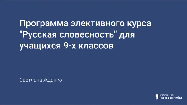 Программа элективного курса «Русская словесность» рассчитана на 34 часа и предназначена для предпрофильной подготовки учащихся 9-х классов, интересующихся русским языком и желающих изучить его глубоко. Занятия способствуют формированию профессионального интереса к лингвистике, научному анализу слова, знакомят с методами его исследования.