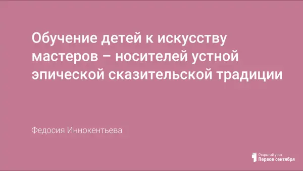 Обучение детей к искусству мастеров – носителей устной эпической сказительской традиции