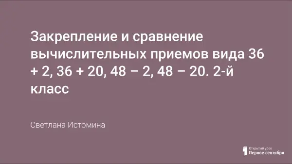 Тема изучается в разделе «Устные вычисления в пределах 100». Урок предполагает коллективную форму работы в сочетании с элементами игры. Активизация учебной деятельности учащихся осуществляется с помощью иллюстраций, занимательного материала, карточек с индивидуальным заданием, аудиозаписи фрагмента музыкального произведения.