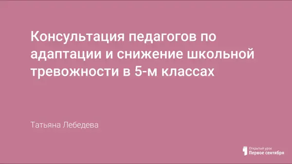 Консультация для педагогов по адаптации и снижение школьной тревожности в 5-х классах проводилась на школьном педсовете. Это консультация психолога для педагогов-предметников, классных руководителей и родителей. Подробно рассказывается о школьной тревожности, ее видах, о закономерностях, о способах снятия тревожности.
