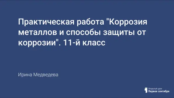 На уроке интерактивные формы организации повторения ключевых вопросов темы интегрированы с экспериментальным исследованием сущности коррозии металлов и способов защиты от коррозии, что не только способствует качественному усвоению учебного материала, но и развитию умений наблюдать, сравнивать, обобщать и объяснять происходящие явления, используя знания, полученные в результате выполнения практической работы.