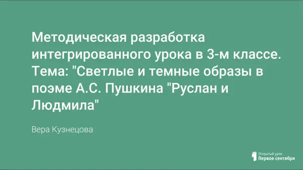 На уроке происходит знакомство с положительными и отрицательными героями поэмы А.С. Пушкина "Руслан и Людмила" и одноименной оперы М.И. Глинки через поэзию и музыку.