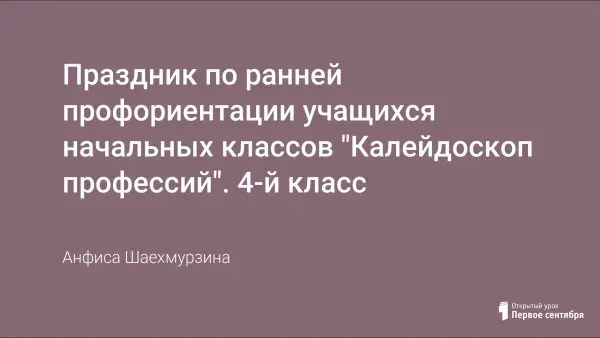 Представлен сценарий праздника в начальной школе по теме "Калейдоскоп профессий". Чтобы стать хорошим специалистом, человек должен много знать и много уметь. Для школьников очень важна учеба. Учение тоже труд, и труд непростой. После окончания школы перед детьми встанет серьезный вопрос – "Кем быть?". Статья посвящена выбору профессии.
