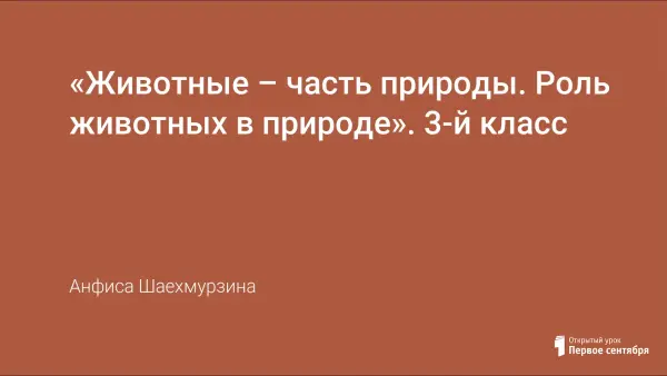 На уроках окружающего мира изучаются растительный и животный мир и его значение для человека, уточняются понятия «живые тела», расширяются знания о месте и роли животного мира в природе, воспитывается бережное отношение.