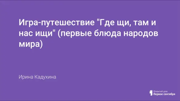 Данная разработка знакомит обучающихся с историей возникновения супов, их значением в питании человека. Эта игра-путешествие формирует у школьников знания о правилах рационального питания, формирует чувство уважения к культуре своего народа и культуре и традициям других народов.