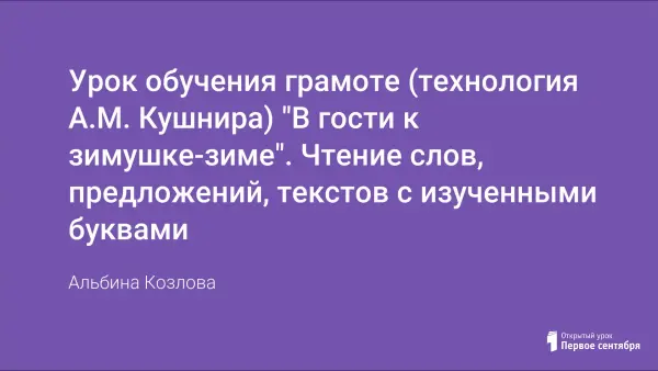 Уверенное владение навыком чтения является одним из основных условий успешности детей в учении. Представленная работа строится на том, что в ней совмещено начальное литературное образование с технологией обучения чтения А.Кушнира. Работая в традиционной системе обучения и используя данную технологию, удается оптимизировать процесс речевого развития младших школьников и повысить уровень сформированности учебных умений, который соответствует требованиям государственного стандарта образования.