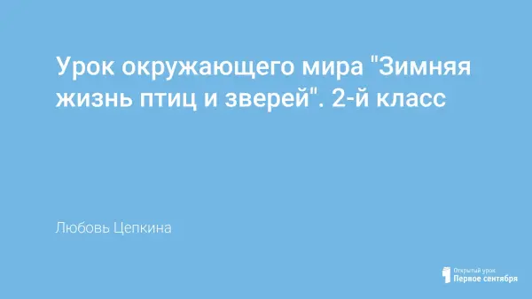 Урок призван обобщить материал о зимующих птицах, о способах приспособления к зимним условиям зверей, показать, что зимой жизнь животных полностью не замирает; показать связь учебного материала по окружающему миру со знаниями по другим дисциплинам (математика, русский язык, литературное чтение), способствовать формированию творческих и исследовательских способностей учащихся, развитию речи, мышления, воображения, воспитывать чувство любви к природе, животным.