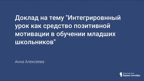 В докладе раскрывается понятие интеграции в обучении, рассматриваются преимущества интегрированных уроков в начальной школе, приводятся примеры интегрированных курсов и даются конкретные советы по подготовке интегрированных уроков.