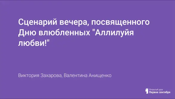 Сценарий вечера, посвященного Дню влюбленных "Аллилуйя любви!"