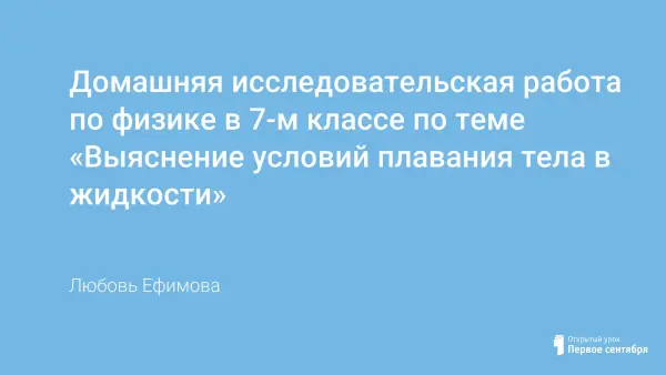 Отталкиваясь от цели лабораторной работы №9 учебника А.В.Пёрышкина «выяснить условия плавания тела в жидкости», было решено немного упростить своим ученикам задачу, однако получить при этом желаемый результат. Была предложена работа, в которой требовалось исследовать, наблюдать и немного поработать с книгой. Здесь не надо было делать сложные расчеты по формулам (что не все любят). Но тогда как? Купаясь в ванне, за чашкой чая, готовя обед, запуская кораблики в ванне или в тазике – да где угодно. Мои ученики увидели главное, физика не только в школе, она есть и дома, физика везде. В качестве отчета необходимо было оформить работу по образцу, заполнить таблицу, написать вывод, либо прислать обратно текстовый документ, заполнив в нем таблицу и сделав выводы. Также необходимо было прислать фото- или видеоотчет (разместить ссылку на Google Диск). Проверять такие отчеты было гораздо интереснее, так как похожих работ практически не встретилось.