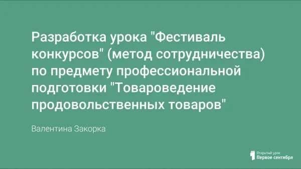 Данная разработка предлагает проведение нестандартного урока "Фестиваль конкурсов" по теме "Зерномучные товары" с целью активизации познавательной деятельности учащихся на уроках предмета профессиональной подготовки "Товароведение продовольственных товаров". Основа урока - групповая работа (метод сотрудничества) по заданной схеме с применением нестандартных заданий.