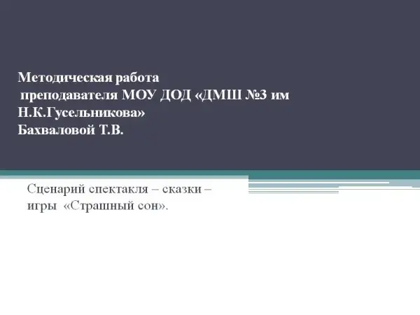 Выступление ребенка на первом концерте должно быть праздником. В спектакле-игре использованы элементы интерактивного представления, благодаря чему дети перестают быть только зрителями, значительно снижаются отрицательные стороны эстрадного волнения.