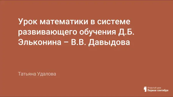 Урок в развивающем образовании — это прежде всего урок жизни в ситуации неопределённости. Это поиск таких средств интеллекта и личности, которые позволят ребенку в будущем решать неизвестные проблемы самостоятельно. Фундаментом урока является создание условий для формирования положительной учебной мотивации и дальнейшего её развития.