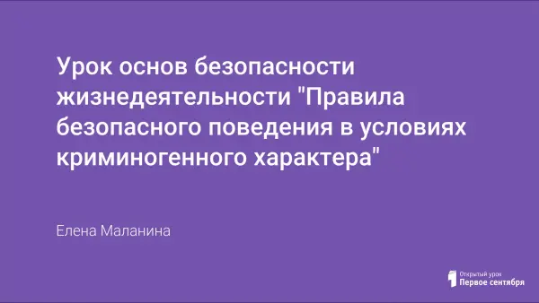 Безопасность каждого человека в обществе во многом определяют условия его жизнедеятельности, и необходимо знать правила безопасного поведения в ситуациях криминогенного характера. Урок знакомит учащихся с основными правилами поведения в транспорте, в общественных местах, в вечернее время, в подъезде дома.