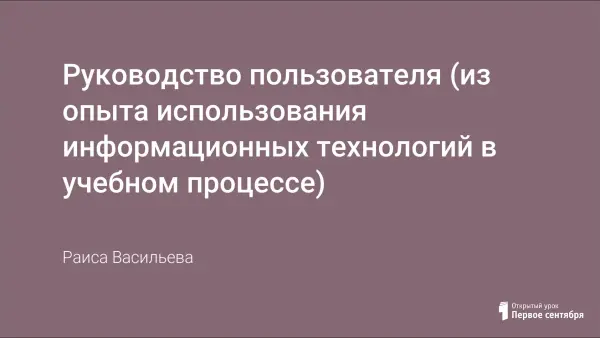 Руководство пользователя (из опыта использования информационных технологий в учебном процессе)