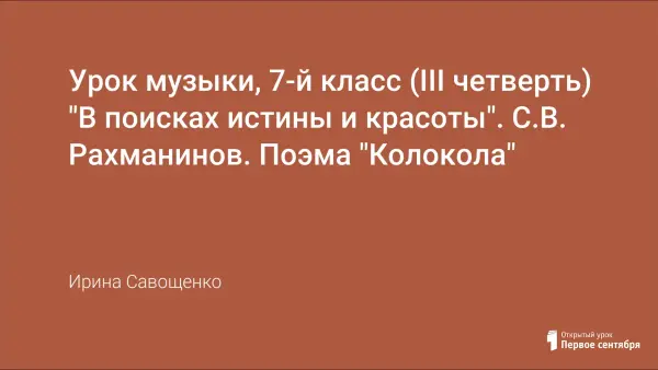 Методическая разработка урока музыки для учащихся 7-го класса художественного отделения МОУ ДОД ДШИ «Лицей искусств». Это сценарий одного из уроков на основе программы по музыке Т.И. Науменко, В.В. Алеева. Через различные виды музыкальной деятельности, решение вопросов-проблем на примере поэмы «Колокола» С.В. Рахманинова учащиеся размышляют о понятиях истины и красоты.