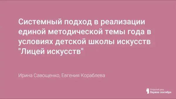 Системный подход в реализации единой методической темы года в условиях детской школы искусств "Лицей искусств"