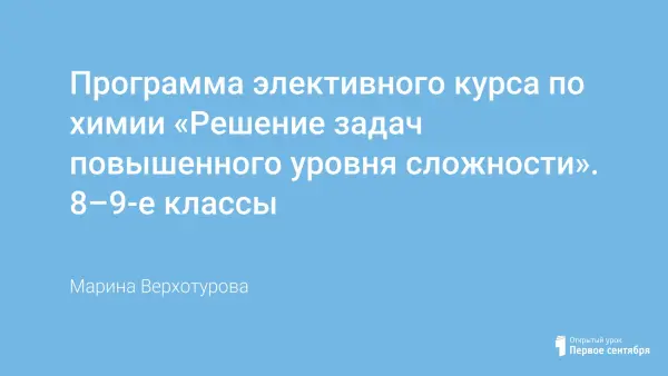 Элективный курс ориентирован на учащихся, проявляющих повышенный интерес к изучению химии и собирающихся продолжить образование в учебных заведениях естественно-научного профиля. Рассчитан на 70 часов (35 часов в 8-м классе; 35 часов в 9-м классе). Курс отвечает требованиям программы школы «Интеграция основного и дополнительного образования на базе общеобразовательной школы».