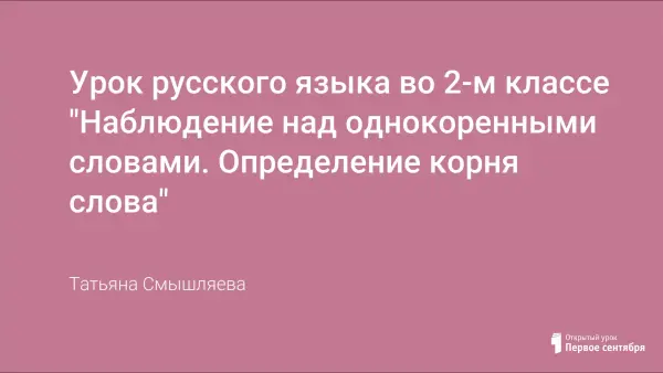 Урок ознакомления с новым материалом по системе «Школа–2100». В ходе урока учащиеся знакомятся с признаками родственных слов, учатся находить в слове корень, подбирать однокоренные слова. На уроке создается ситуация удивления, что вызывает познавательный интерес учащихся к уроку.