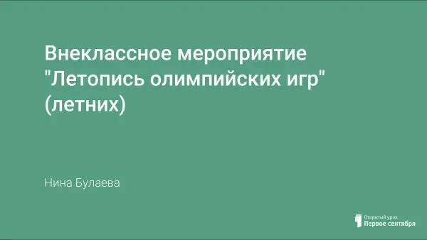 Внеклассное мероприятие для учащихся 8–11-х классов. Цель – обобщение знаний по истории Олимпийского движения от античных игр до настоящего времени, знакомство с высокими достижениями спортсменов нашей страны в летних Олимпийских играх, воспитание чувства патриотизма, гордости на примерах героев-олимпийцев.