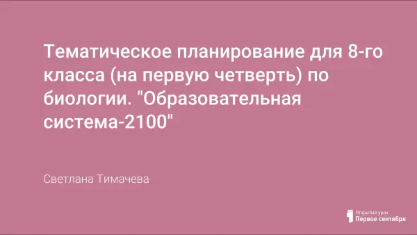 Тематическое планирование для 8-го класса (на первую четверть) по биологии. "Образовательная система-2100"