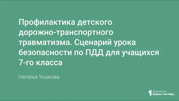 На примере представленного урока в 7-м классе показана работа по предупреждению детского дорожно-транспортного травматизма, воспитанию дорожной и правовой культуры поведения детей и подростков, пропаганде правил дорожного движения.