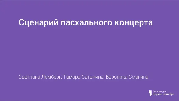 Цель концерта: познакомить с традициями католической Пасхи и сравнить с обычаями православной. Развивать творческие способности детей (через драматизацию, исполнение песен, танцев и стихов, литературный перевод стихотворений, участие в выставке пасхальных букетов, яиц, игрушек, булочек и пасхальных открыток). Воспитывать уважительное отношение к чужой культуре.
