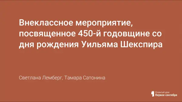 Разработка внеклассного мероприятия на английском языке, посвященного 450-й годовщине со дня рождения Уильяма Шекспира для учащихся старших классов школ с углубленным изучением английского языка.