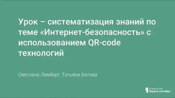 Урок – систематизация знаний по теме «Интернет-безопасность» с использованием QR-code технологий