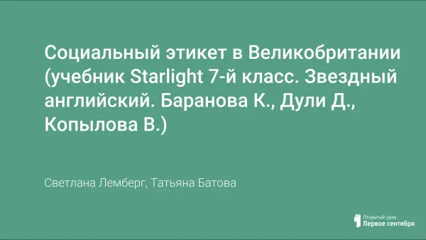 Социальный этикет в Великобритании (учебник Starlight 7-й класс. Звездный английский. Баранова К., Дули Д., Копылова В.)