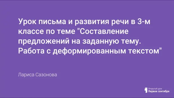 Урок проведен в форме путешествия по теме "Составление предложений на заданную тему. Работа с деформированным текстом". Целью урока является закрепление знаний учащихся. Составлен урок в соответствии с программой специальных (коррекционных) образовательных учреждений VIII вида.